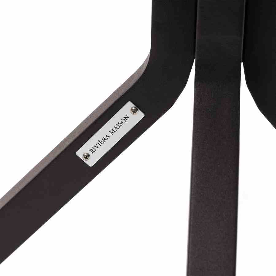 Dette utendørsbordet skaper den muntre strandatmosfæren på terrassen din. Den er 70 x 70 x 76 cm i størrelse og har solide aluminiumsbein, hvorav det ene har Rivièra Maison-logoen på en sølvfarget aluminiumsplate. Bordplaten er laget av planker av finkornet teak.