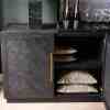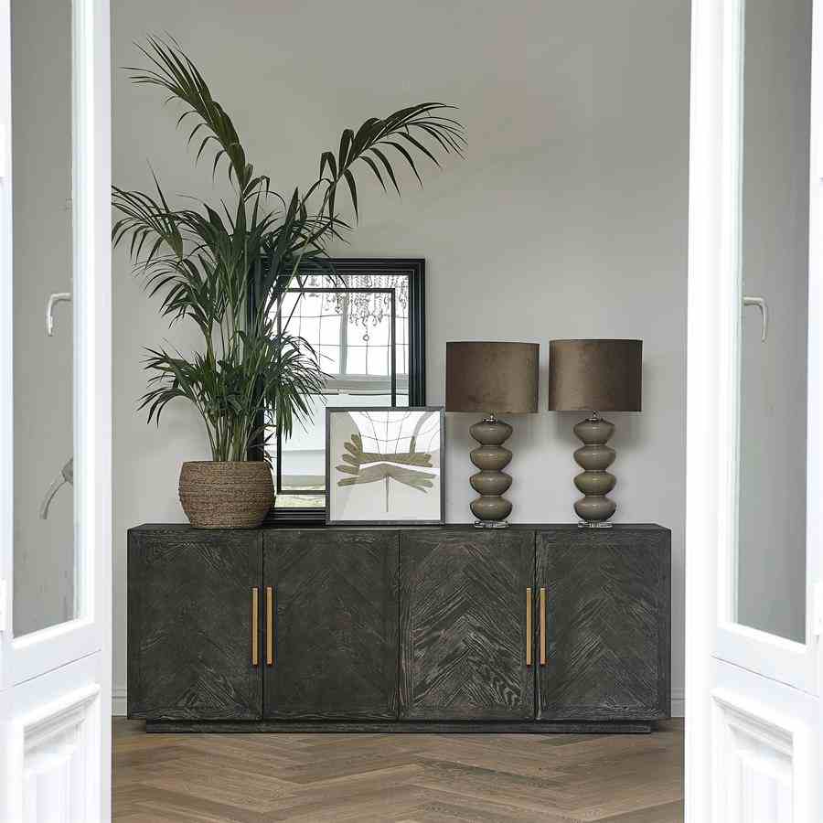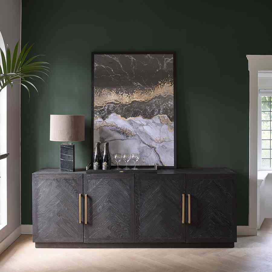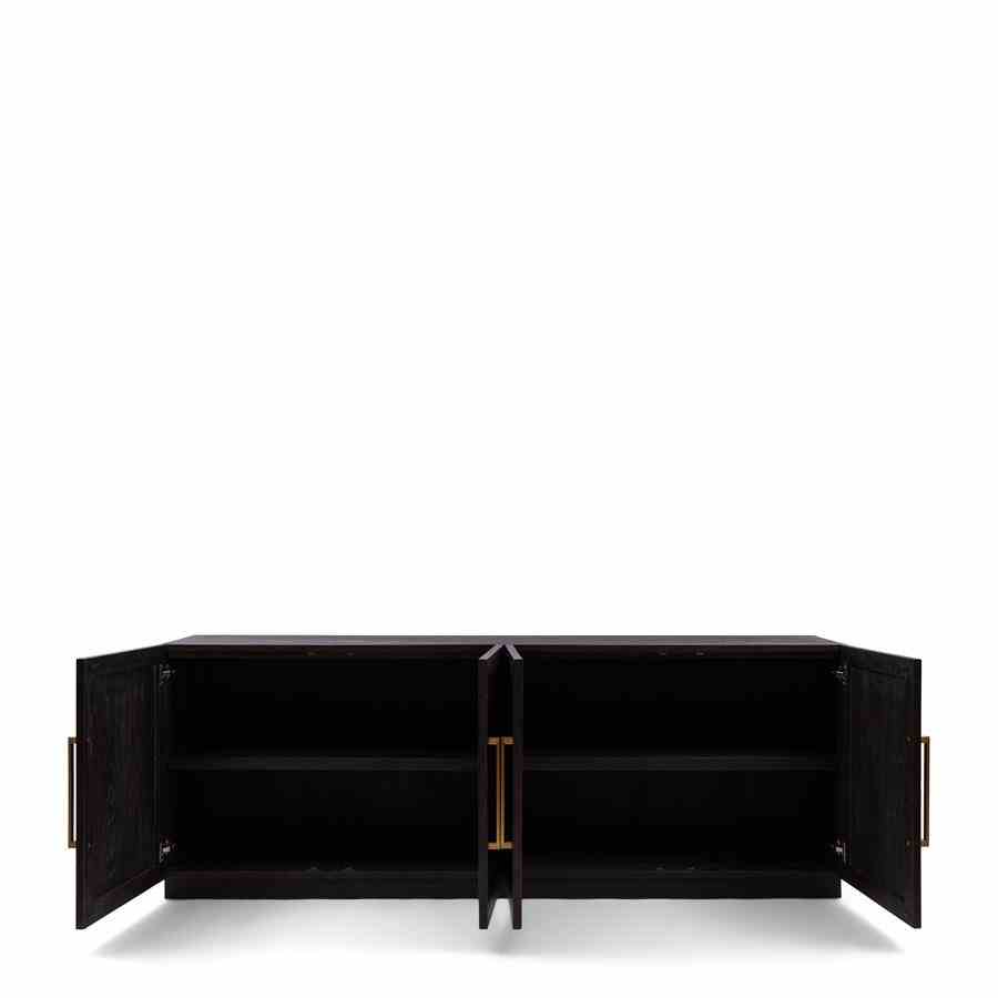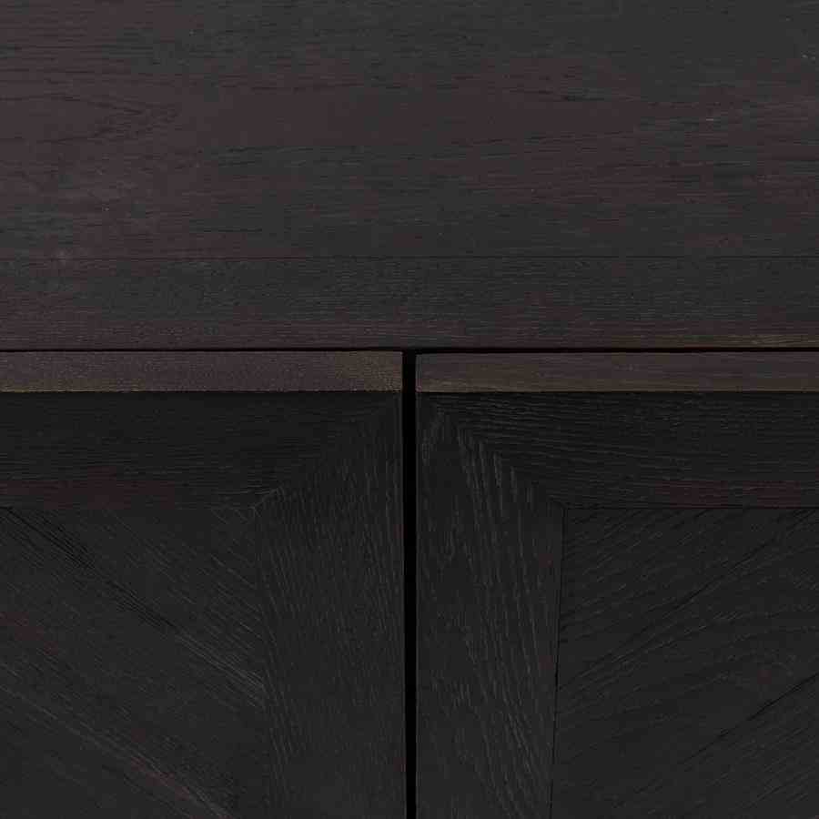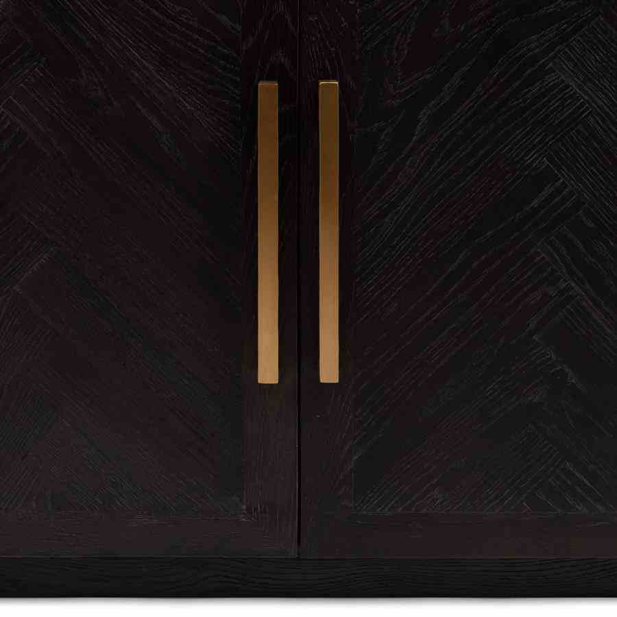 5th Avenue Dresser er et ekte blikkfang takket være størrelsen og bruken av vakre materialer som metallhåndtak i mykt gull og basen av resirkulert eik. Treet har et fiskebeinsmønster og et mørkt belegg som avslører treets årring. Skapet har dype hyller på innsiden og alle dører har en myklukkende mekanisme. Tips: for vedlikehold, bruk Premium Wood Care Kit.
