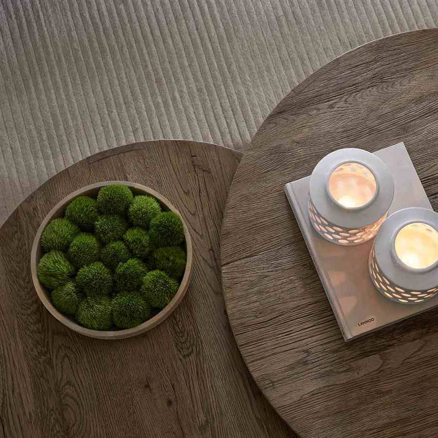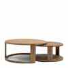 Umiddelbar atmosfære og varme i stuen din med Astoria salongbordet fra Rivièra Maison! Dette settet med 2 bord er laget av gjenvunnet eik med et forvitret utseende. Treets unike sjarm bringer karakter til interiøret ditt. Settet er ekstra lekent med sine forskjellige dimensjoner dia 100 x høyde 42 cm og dia 80 x høyde 36 cm. Nok plass til å style vakkert tilbehør og til å sette det viktigste på det.
