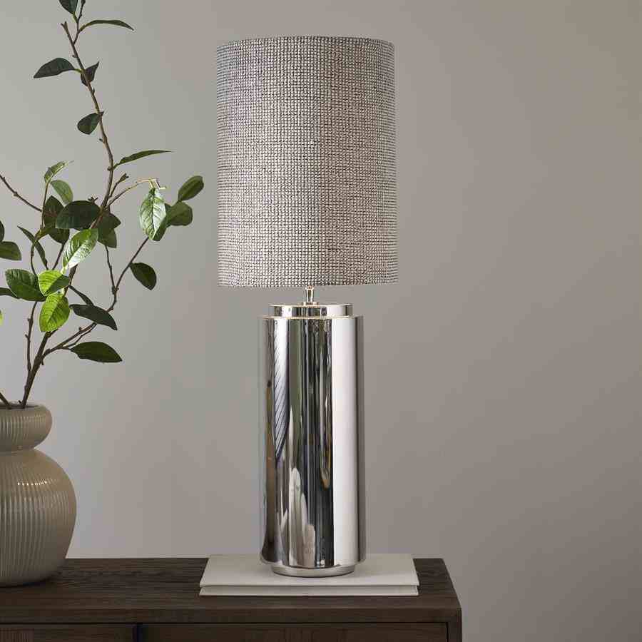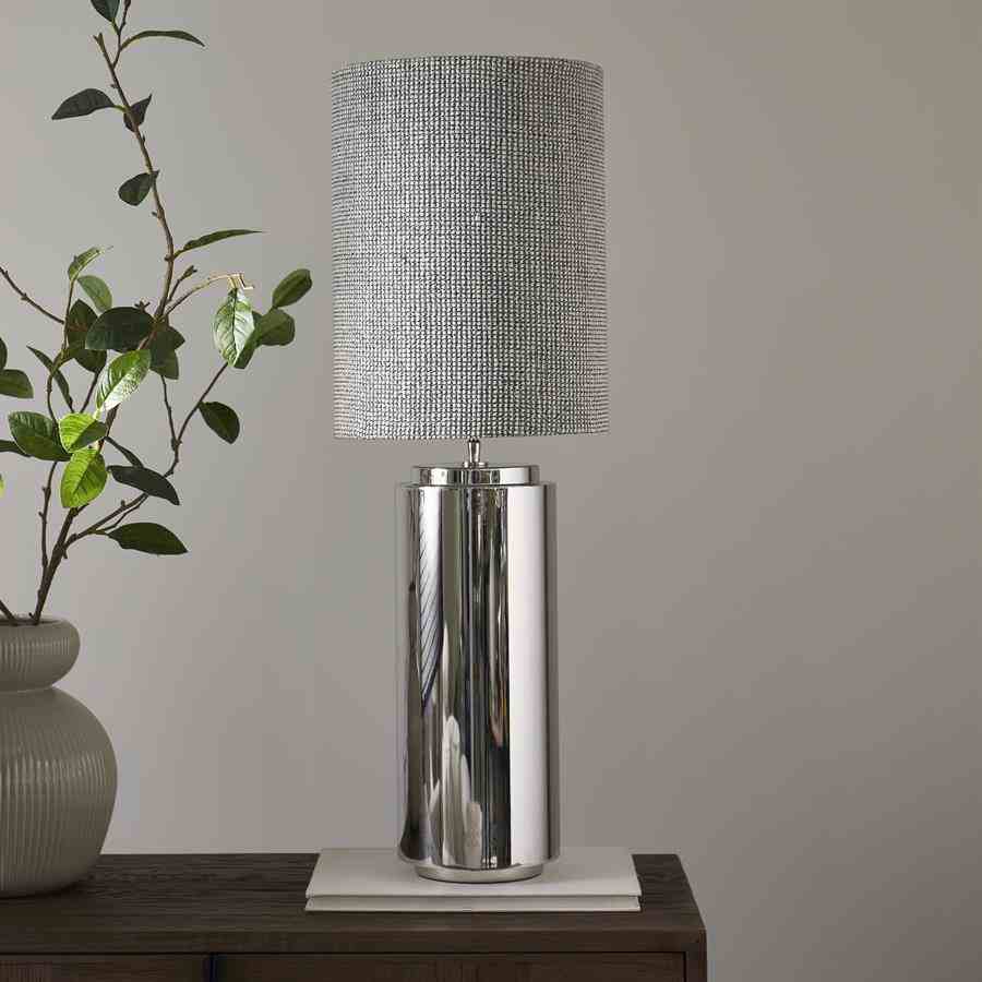 Denne sylindriske lampeskjermen er finvevd av silke i svart og hvit blanding, og tilbyr et elegant og moderne utseende. Den sofistikerte teksturen og det moderne fargevalget gir et elegant preg til interiøret ditt, og gir ethvert rom en stilig oppgradering.