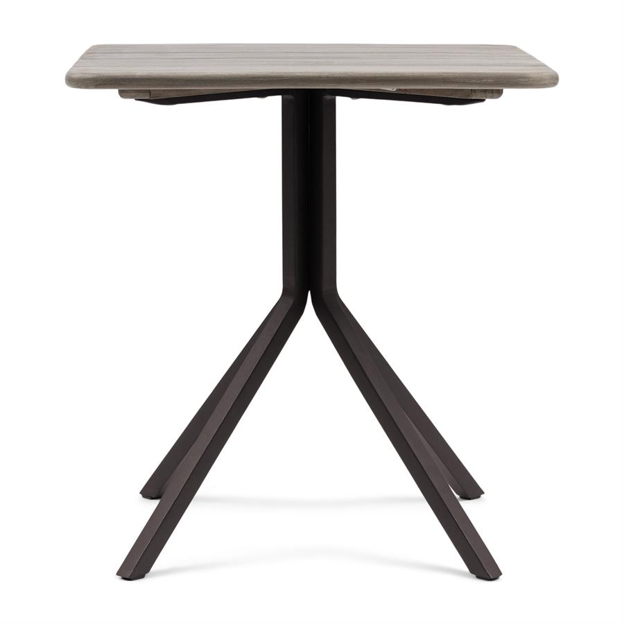 Dette utendørsbordet skaper den muntre strandatmosfæren på terrassen din. Den er 70 x 70 x 76 cm i størrelse og har solide aluminiumsbein, hvorav det ene har Rivièra Maison-logoen på en sølvfarget aluminiumsplate. Bordplaten er laget av planker av finkornet teak.