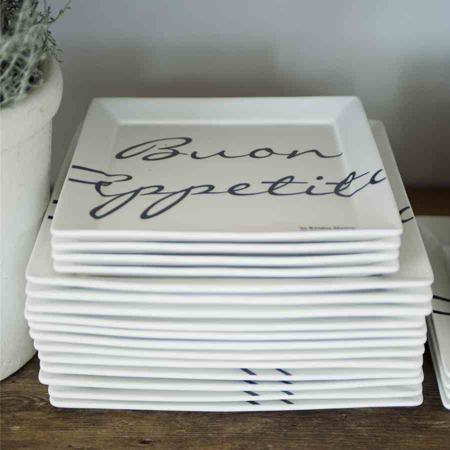Buon appetito betyr selvfølgelig «nyt maten din» på italiensk. Og hvis borddekkingen har noe med det å gjøre, så gjør du det! Denne nye middagsserveren med tallerkener i tre forskjellige størrelser gjør hvert måltid komplett. Etterpå, ikke glem å gi din complimenti ‘alla cuoca’, komplimenter til kokken!