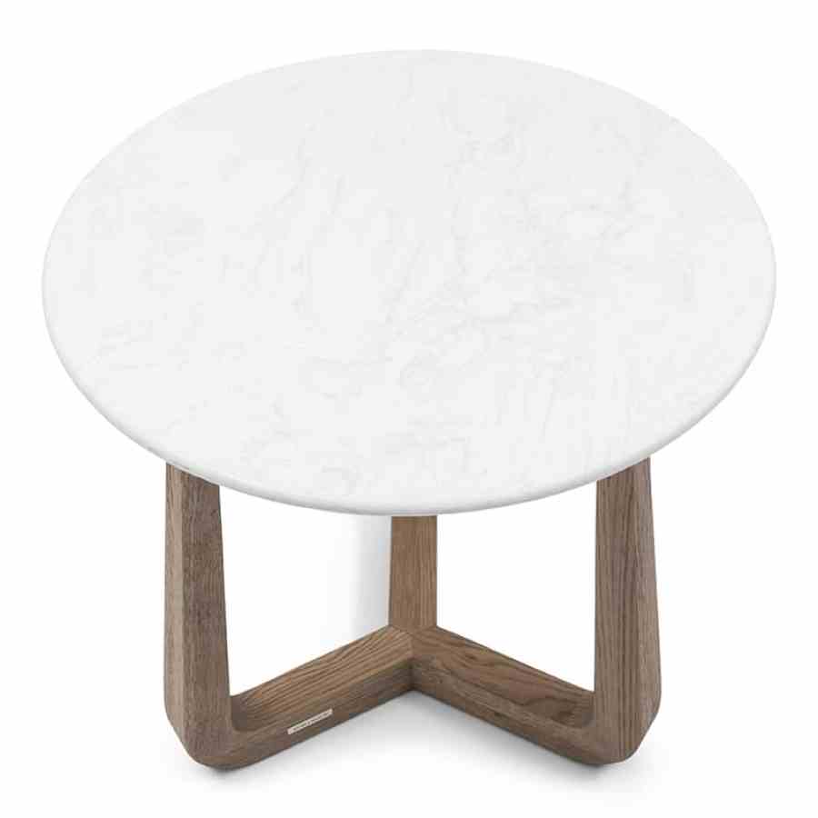 Dette sidebordet er et unikt statement for ethvert interiør. Den runde marmortoppen gir et luksuriøst preg, mens de tre eikebena kommer sammen i et moderne design. Den subtile Riviera Maison-logoen på benet fremhever det sofistikerte stykket. Takket være natursteinen er hvert bord et unikt stykke, perfekt for et stilig og moderne preg i interiøret ditt.