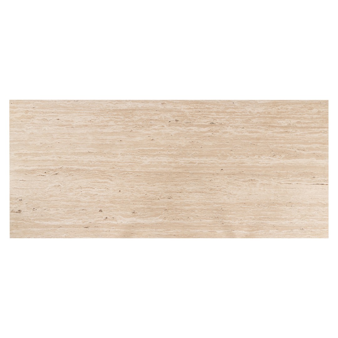 Dining table Claremont combines a bold, dark base with a luxurious travertine top. The sculptural silhouette makes it a striking centrepiece for any dining area.