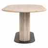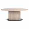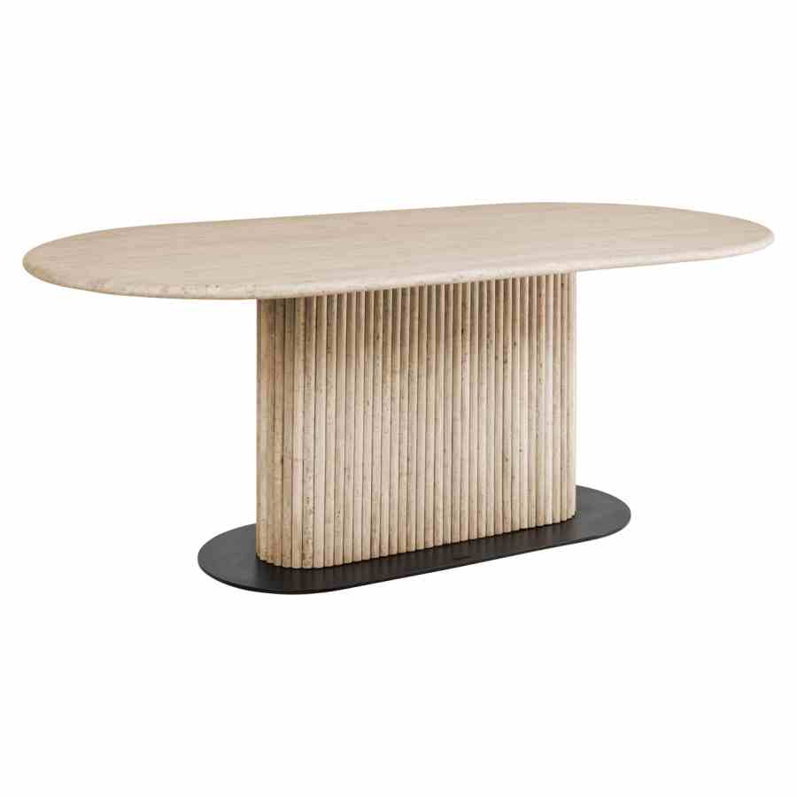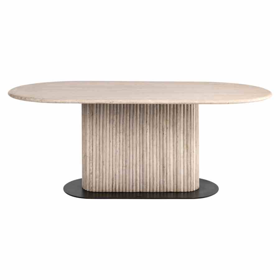 Dining table La Cantera features a beige base with vertical lines and a matching top. Its soft tones and sculptural design make it a sophisticated centrepiece.