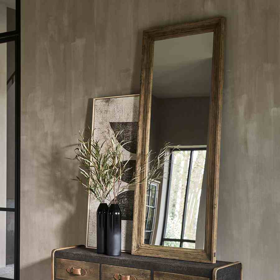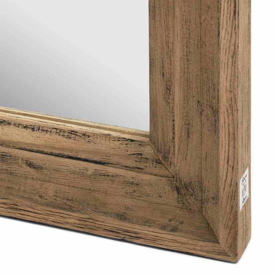 Dette er et speil som tiltalende bruker en klassisk form. Rammen er laget av gjenvunnet eik i dimensjoner som gir en spesiell dybde til speilet. Det er stilig enkelhet.
