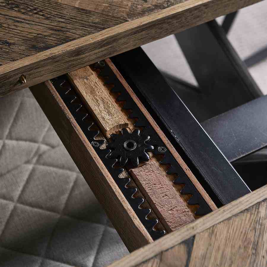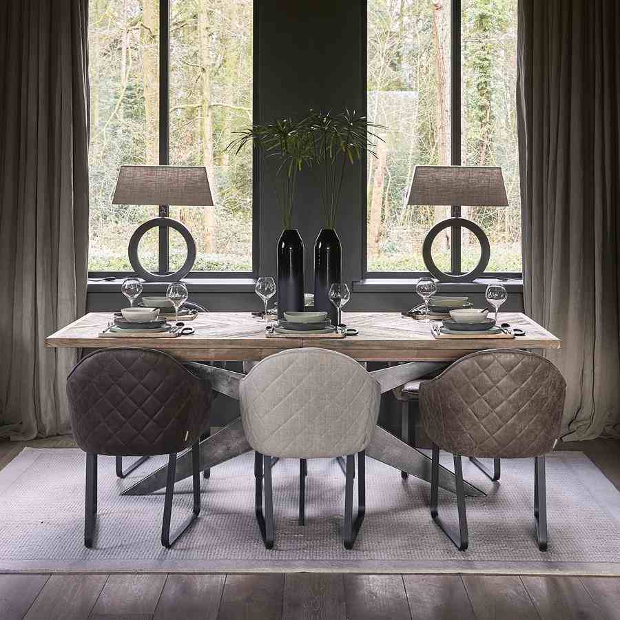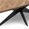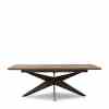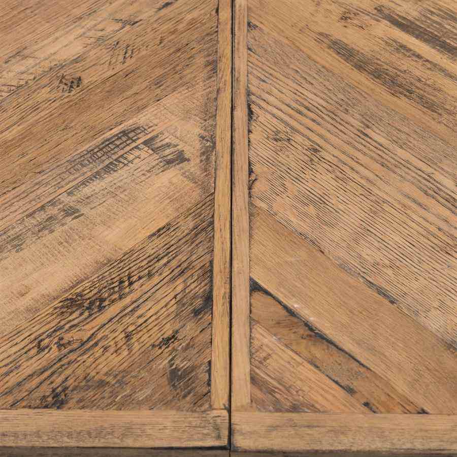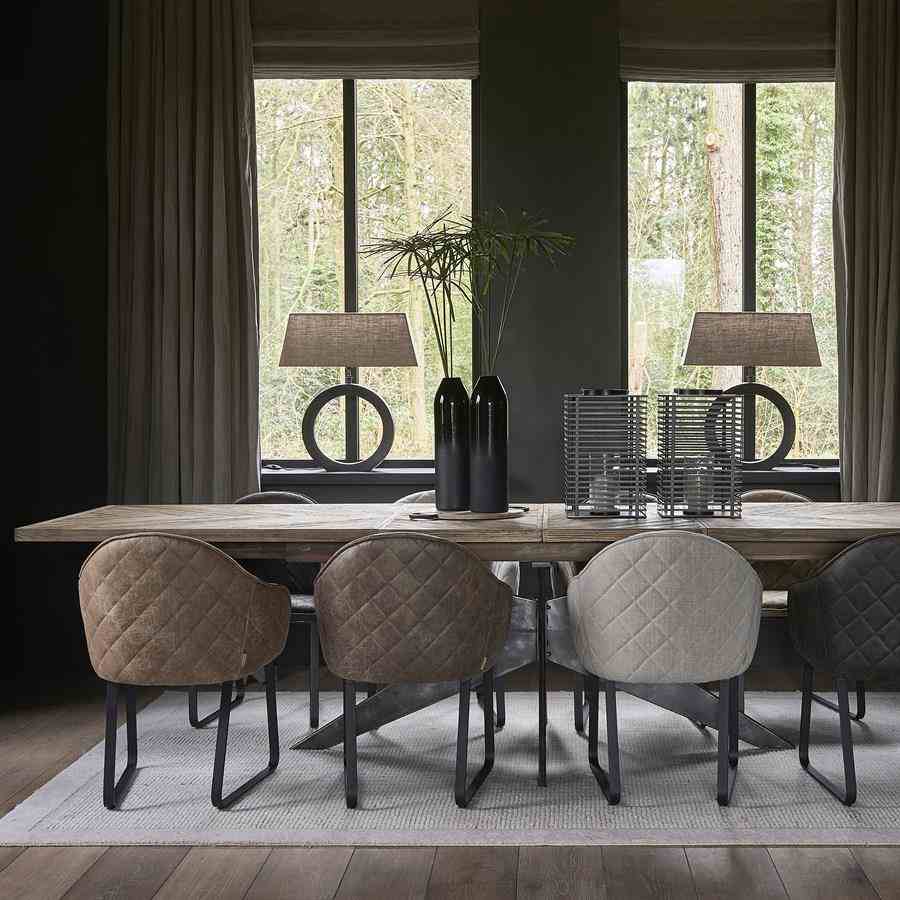 Dette bordet, laget av gjenvunnet eik, har en behagelig lengde på 220 cm. Hvis du har flere gjester, kan den enkelt utvides til 270 cm eller til og med til 320 cm lang. Bordet har en vakkert bearbeidet treplate og en solid svart ramme og ben.