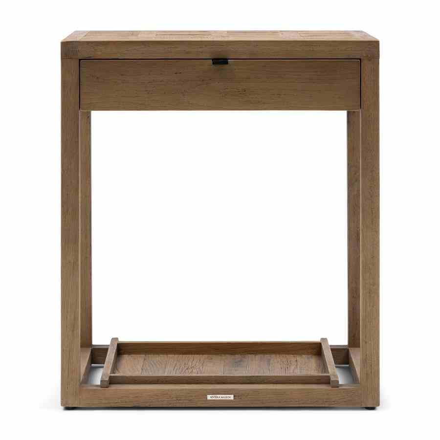 Møt nattbordet fra Fraser Island, et mesterverk av gjenvunnet eik. De naturlige trekornene gir skapet et autentisk, rustikk utseende som vil gi soverommet ditt karakter. I tillegg til sin estetiske sjarm, tilbyr nattbordet praktiske fordeler: Den nederste hyllen kan enkelt tas av og brukes som et brett perfekt for frokost på sengen eller som ekstra oppbevaringsplass. Kombiner stil med funksjonalitet og berik interiøret ditt med nattbordet fra Fraser Island.