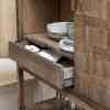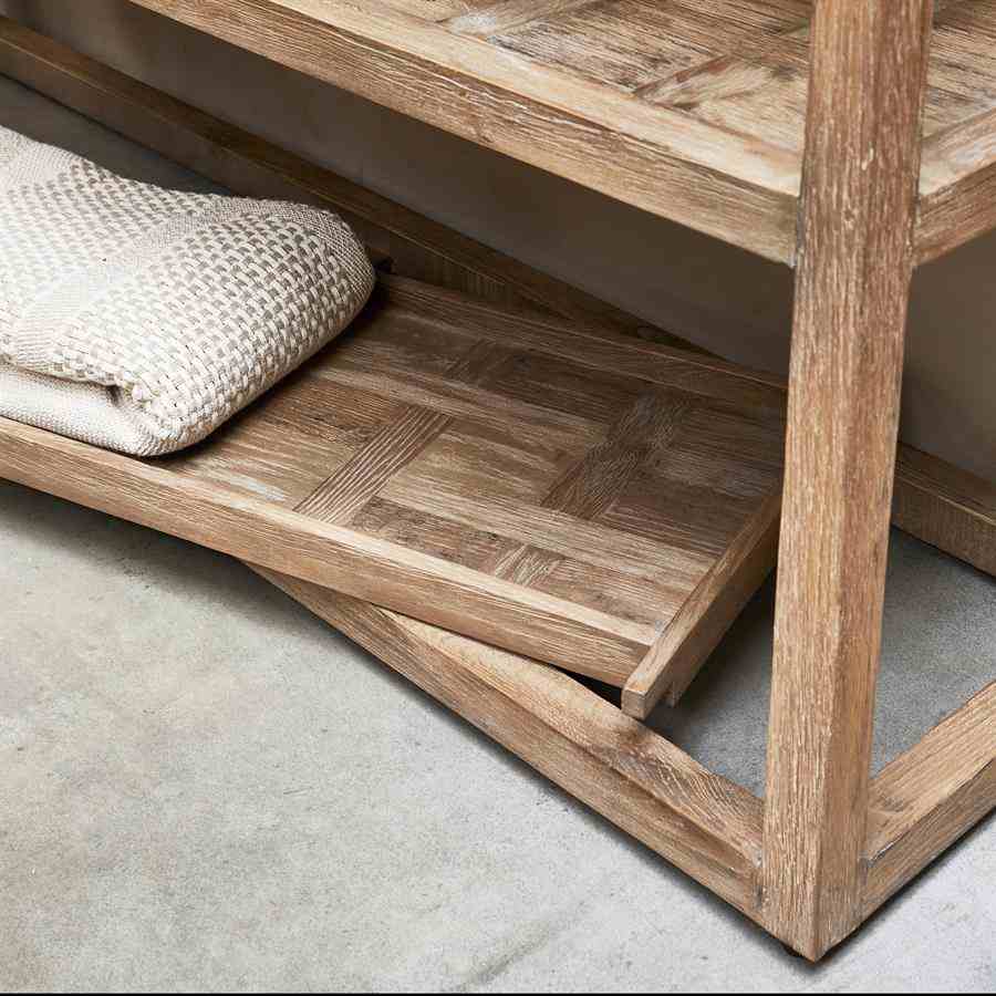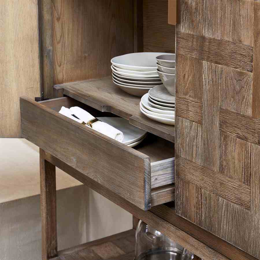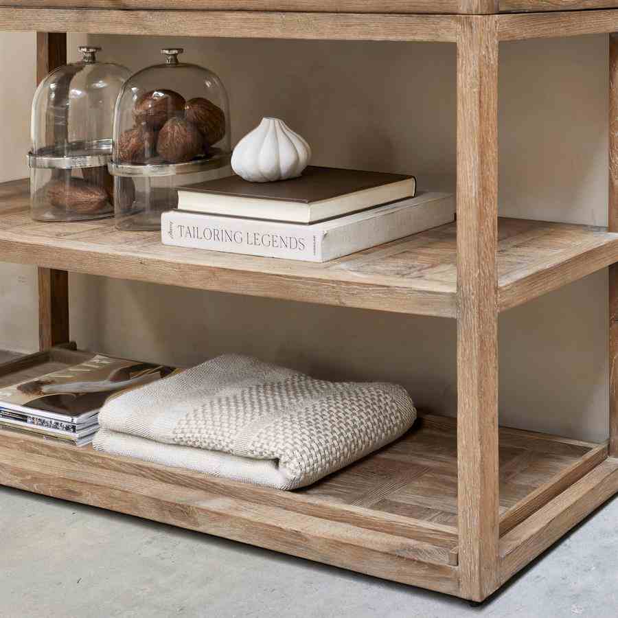 Utforsk magien til Fraser Island Cabinet. Dette spesielle møbelet utstråler personlighet på grunn av dets høykvalitets gjenvunne eik, som får et unikt utseende av de naturlige trekornene. Bortsett fra lagringskapasiteten, bringer dette skapet varme og karakter til ethvert interiør. Med nok plass til å organisere eiendelene dine, er den også et praktisk tillegg til hjemmet, stuen eller kontoret. En tilleggsfunksjon som skiller dette skapet fra hverandre er muligheten til å fjerne den nederste hyllen og bruke den som et funksjonelt brett.