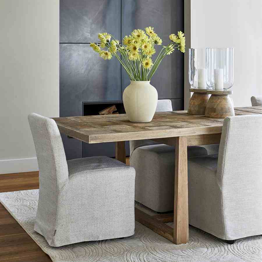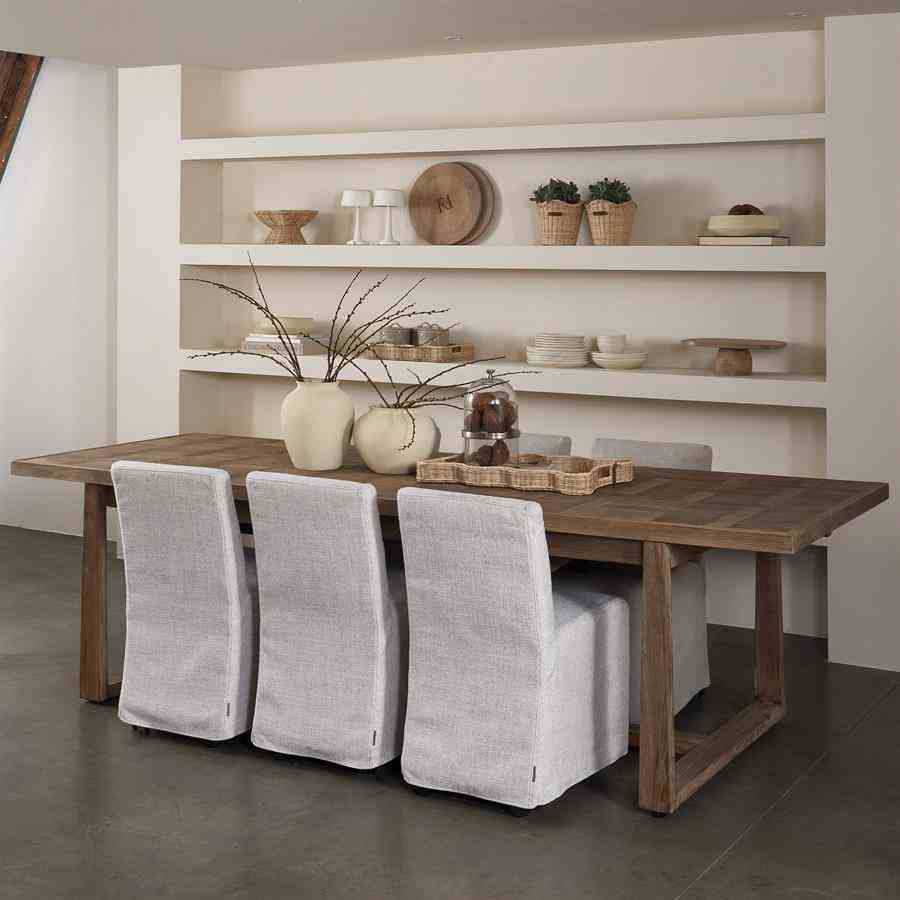 Fraser Island Dinign Table er fleksibelt og kan utvides til så mange som tre forskjellige lengder. Enten du spiser et koselig familiemåltid eller arrangerer et middagsselskap med venner, har dette spisebordet nok plass til enhver anledning. Bordet er laget av resirkulert eik og har en solid ramme, noe som betyr at du vil ha glede av dette spisebordet i lang tid.