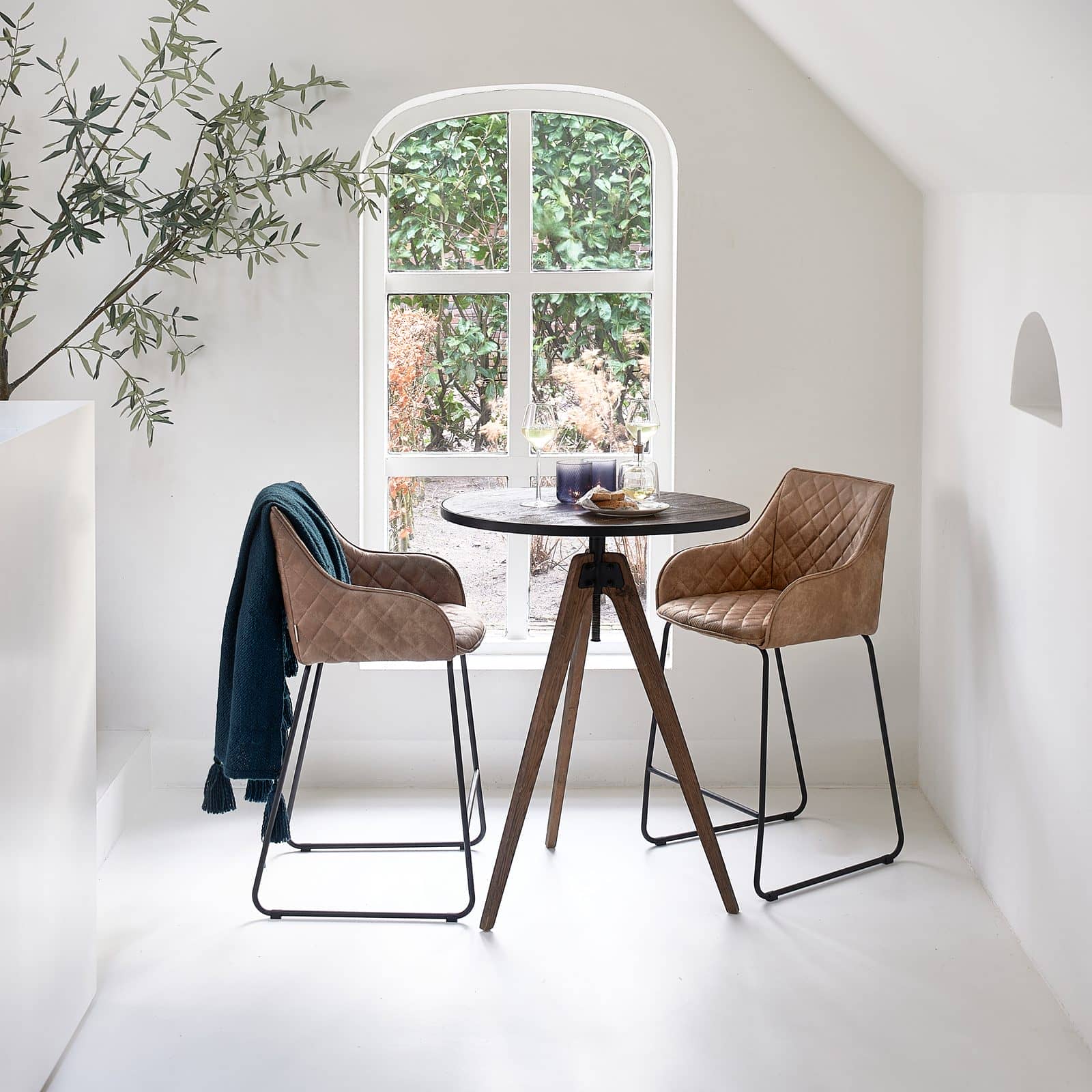 Frisco Drive Counter Stool gir umiddelbart interiøret karakter takket være det industrielle utseendet. Jernrammen gir krakken det industrielle utseendet, til tross for at jernbena har en subtil design. Bøttesetet er dekket med pelliniskinn, som er toppsydd i diamantmønster, noe som gir inntrykk av at hele krakken er pyntet med bittesmå puter.