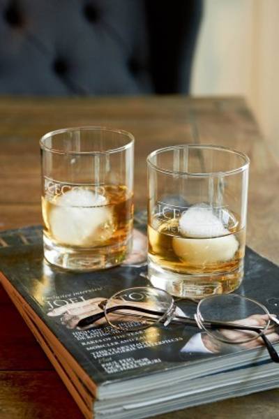 Sett med 2 stk glass og stor isbitform fra Riviera Maison
