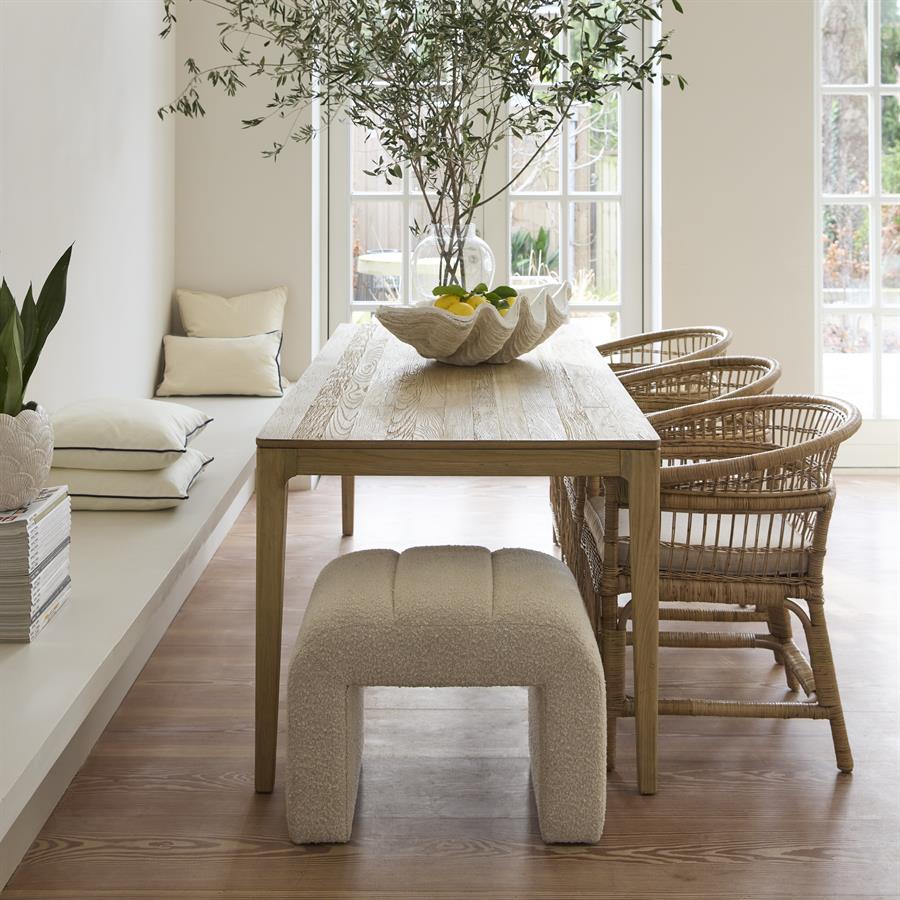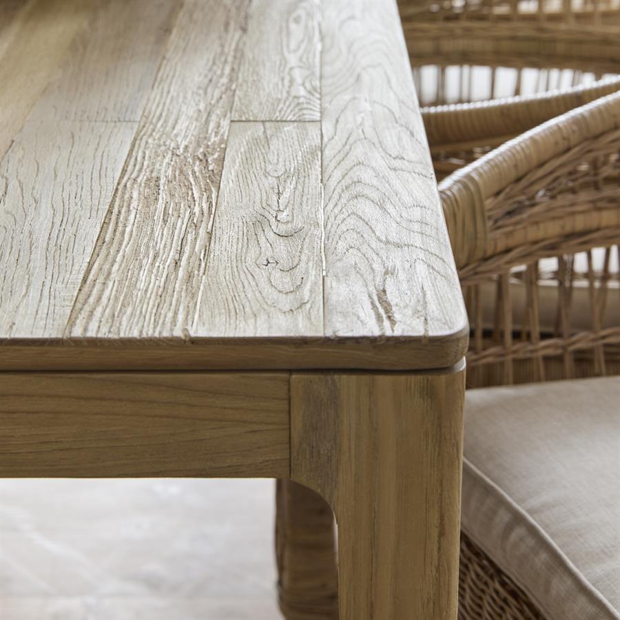 jakten på det perfekte midtpunktet til spisestuen din, er vi glade for å kunne tilby Imola spisebord på 220×90 cm som et utsøkt valg. Dette imponerende bordet er laget av gjenvunnet eik av høy kvalitet, og utgjør en vakker og allsidig base for enhver spisestuestil. Med sin base, bestående av fire solide ben, og en romslig bordplate, er dette bordet både funksjonelt og estetisk tiltalende.