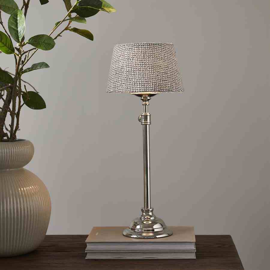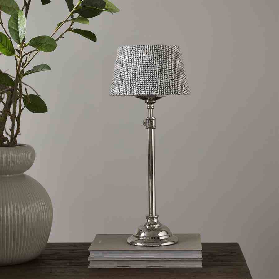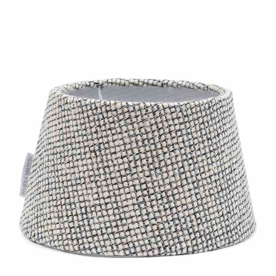 Denne runde lampeskjermen er laget av svart og hvitt blandet vevd stoff, og legger til moderne sjarm til ethvert rom. Den blandede teksturen skaper subtil dybde, mens den runde formen gir et balansert og sofistikert utseende. Perfekt for å skape en stilig og moderne atmosfære i ditt interiør.