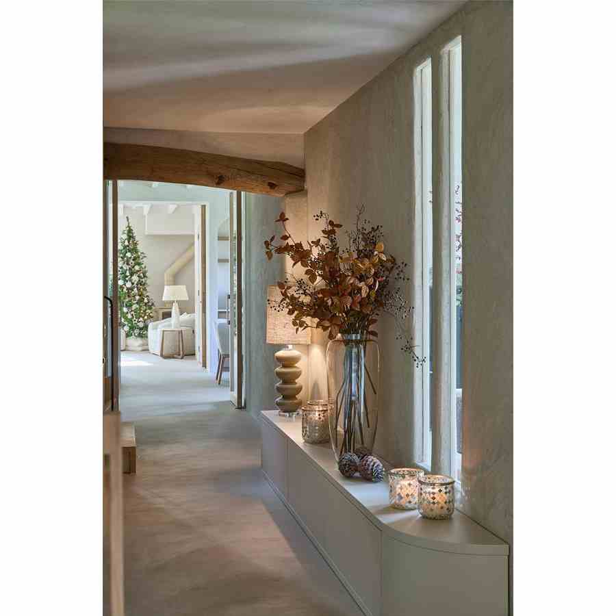 Denne lampeskjermen i lin har en langstrakt form, noe som gjør den perfekt på en vakker bordlampe. Den nøytrale fargen lin, eller en myk sandfarge, blander seg vakkert med linstoffet. Denne lampeskjermen lar lyset spres på en koselig og subtil måte for den ultimate atmosfæren i hjemmet ditt. Dimensjonene på denne sylindriske lampeskjermen er 30×40 cm.