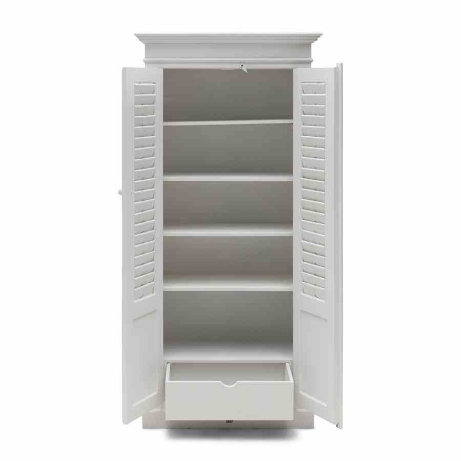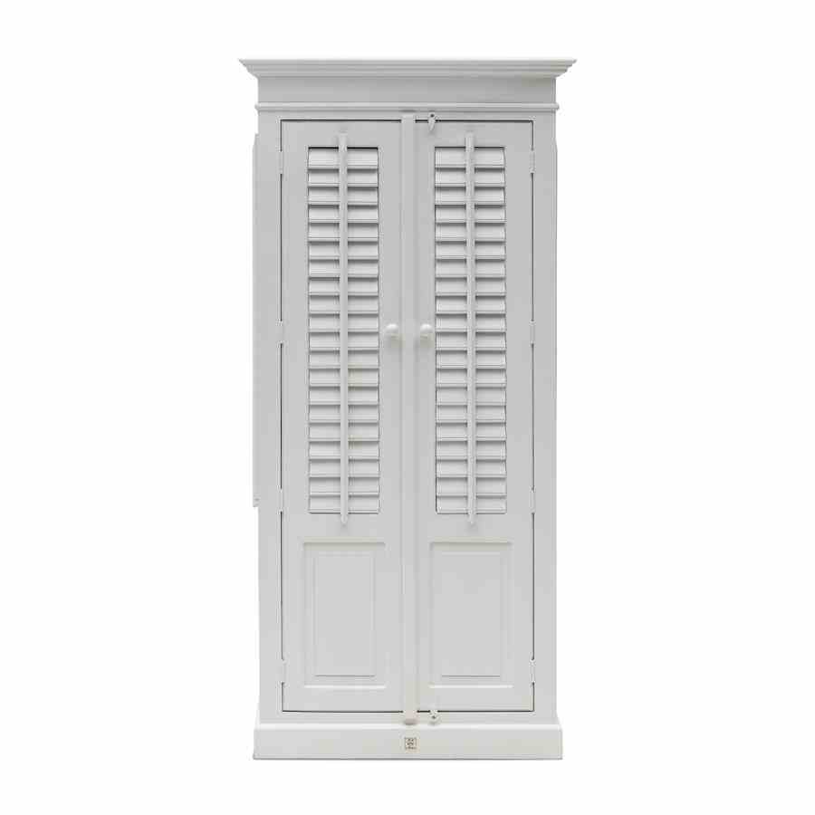 New Orleans er den største byen i den amerikanske delstaten Louisiana. Byen ligger på bredden av Mississippi-elven. Dette friske hvite lamellskapet laget av akasietre er spesielt stilig med sine bevegelige skodder foran og på siden. Inne i skapet finner du fem store hyller og en stor skuff.
