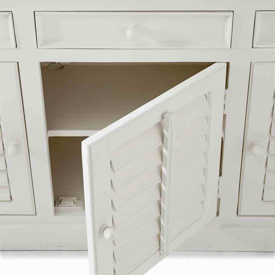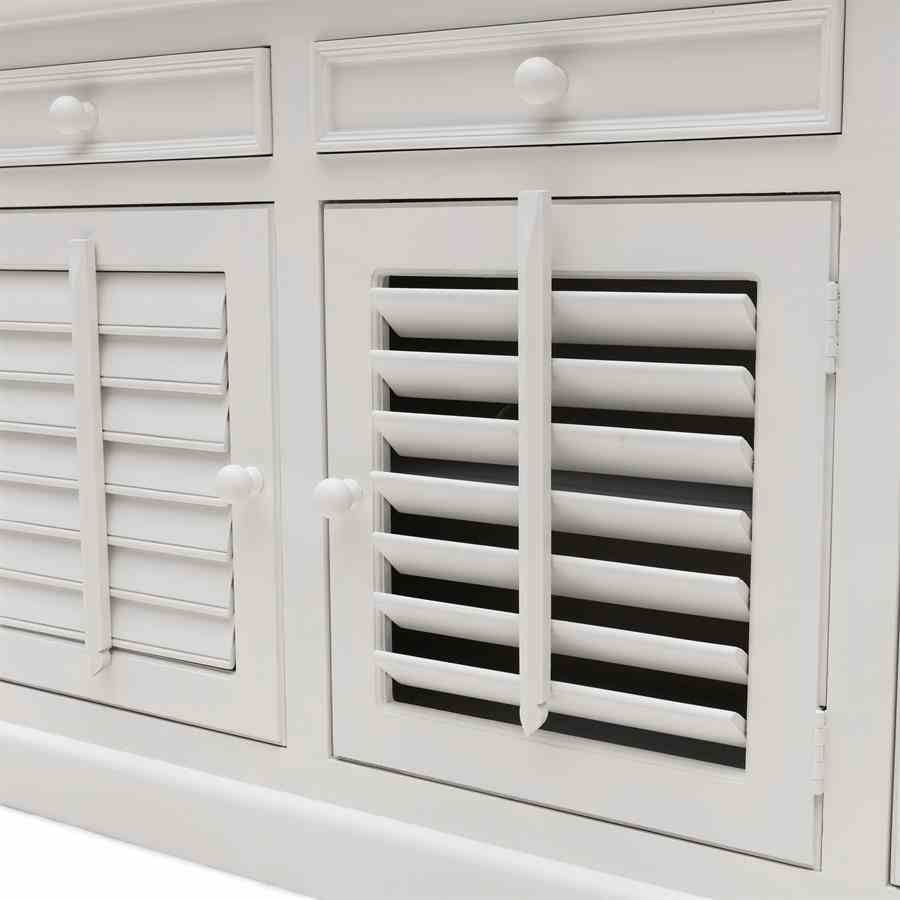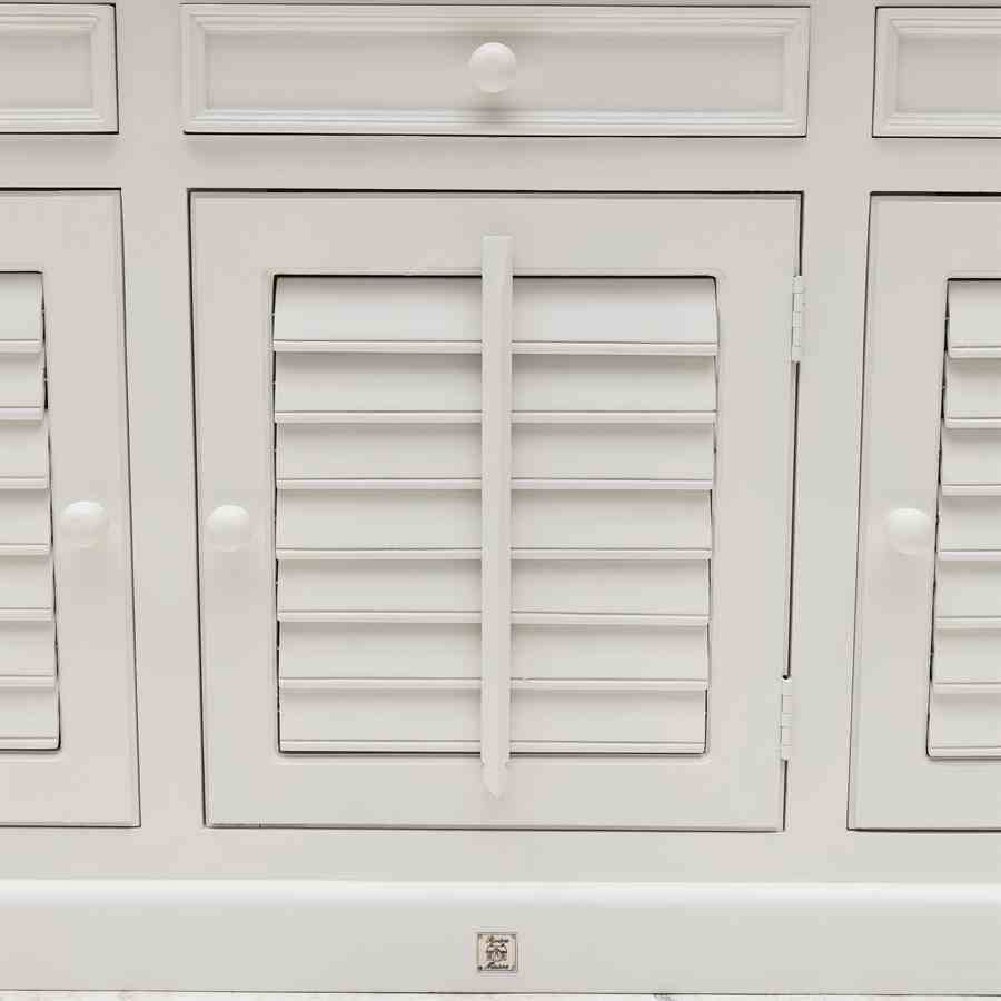 New Orleans er den største byen i den amerikanske delstaten Louisiana. Byen ligger på bredden av Mississippi-elven. Denne akasieskjeken med skapdører har skodder og tre skuffer.