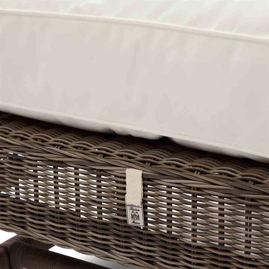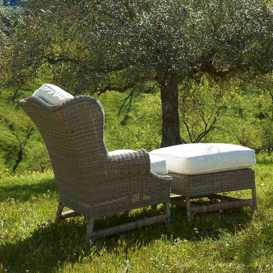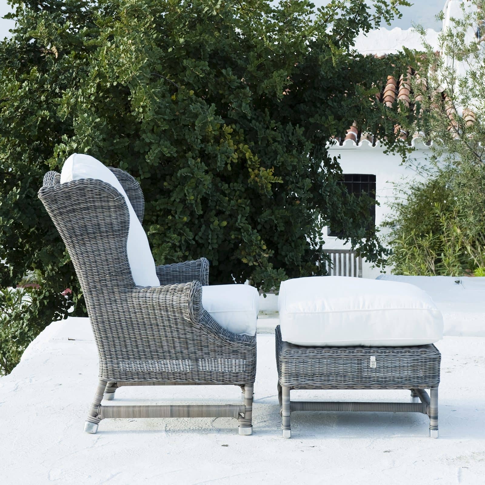 Sete, fotskammel. Hvor mange funksjoner kan ett møbel ha? Denne laget av spesiell utendørs stokk ser bra ut med de andre hagemøblene.