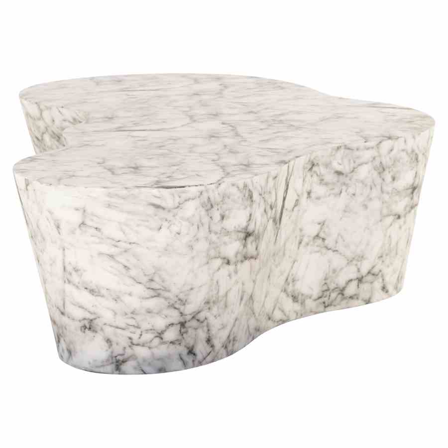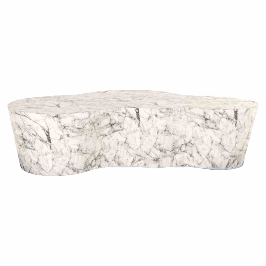 The Rockyard coffee table features a white marble look, providing a modern and elegant appearance. The organic shape of the table adds a unique and sculptural element to your interior or outdoor space. The surface, with its subtle marble patterns, gives the table a luxurious look, while the material is low-maintenance and durable. This versatile coffee table is suitable for both indoor and outdoor use, making it a striking and stylish piece that is both functional and decorative in various living styles.