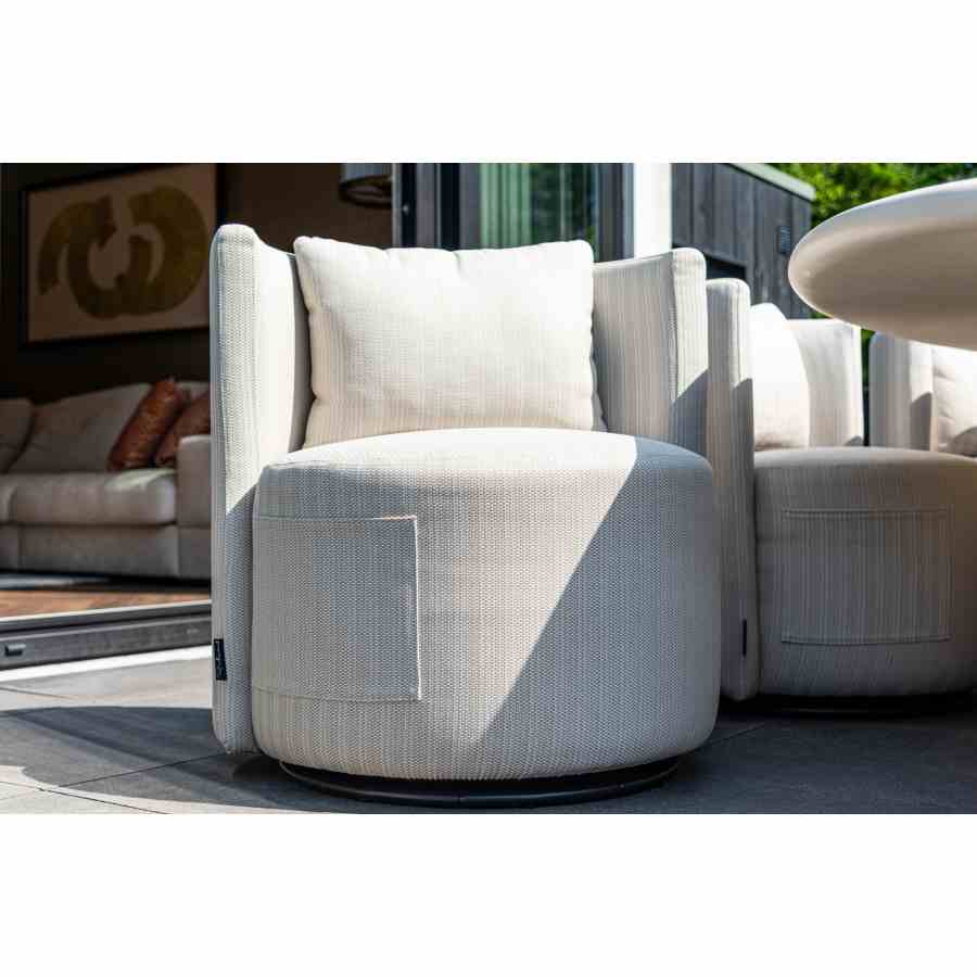The Marlin outdoor swivel dining chair combines luxury and functionality in an elegant design. With its stylish beige color and high-quality, weather-resistant materials, this chair is ideal for outdoor use. The swivel design adds extra convenience, while the chair is made for long-term seating comfort. A perfect choice for a refined outdoor space.