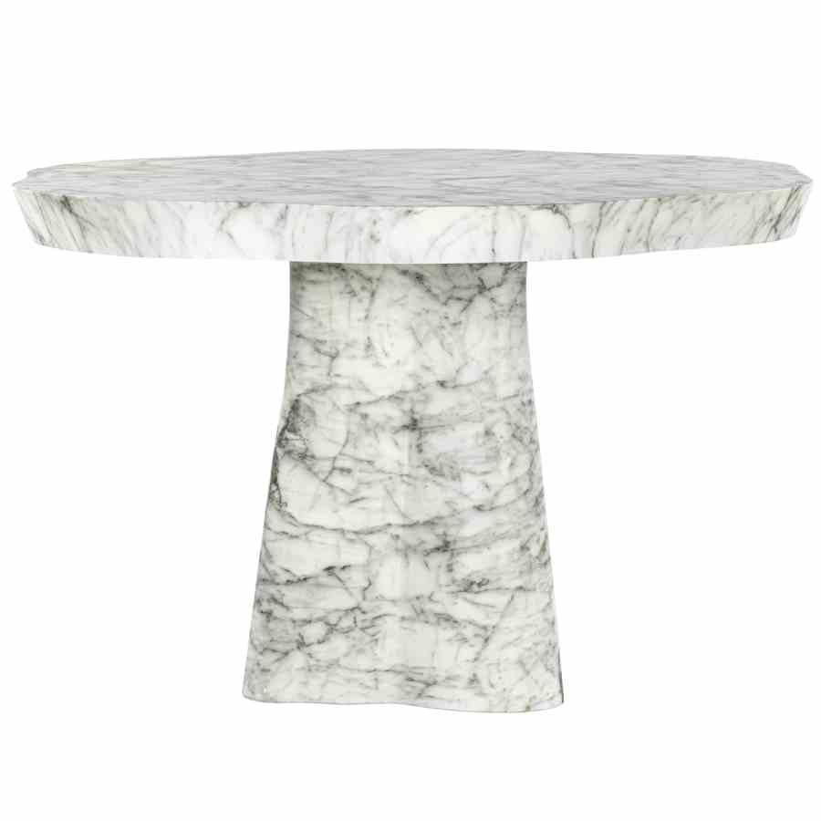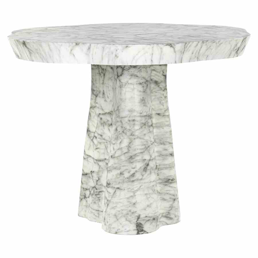 The Rockyard dining table features a refined marble look, giving it a luxurious and contemporary appearance. The tabletop and the sturdy, tapered base have an organic shape that imitates the natural character of marble. This dining table is available in two sizes: 100Ø and 140Ø, making it suitable for both smaller and larger spaces. Crafted from durable, low-maintenance materials, it is ideal for both indoor and outdoor use. The combination of shape and material makes the Rockyard dining table a stylish and functional addition to any setting.