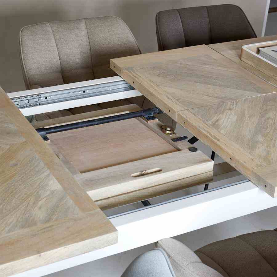Pacifica Extendable Dining Table er et vakkert møbel som harmonisk kombinerer funksjonalitet og eleganse. Takket være det unike designet og bruken av høykvalitets mangotre, gir dette spisebordet et snev av stil til enhver spisestue. Med muligheten til å justere størrelsen tilbyr bordet stor fleksibilitet, noe som gjør det egnet for intime middager så vel som større sammenkomster.
