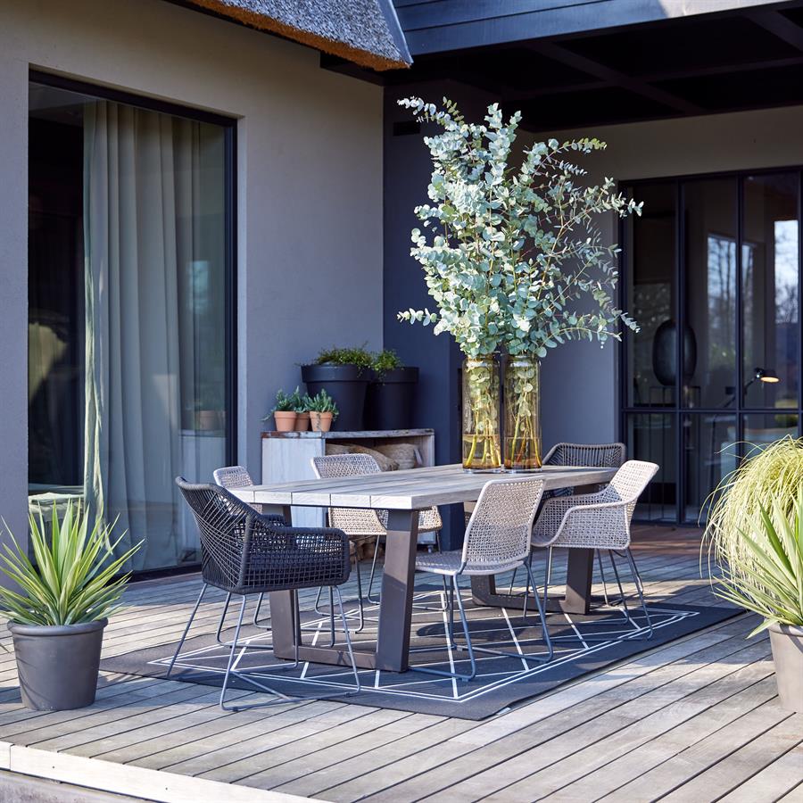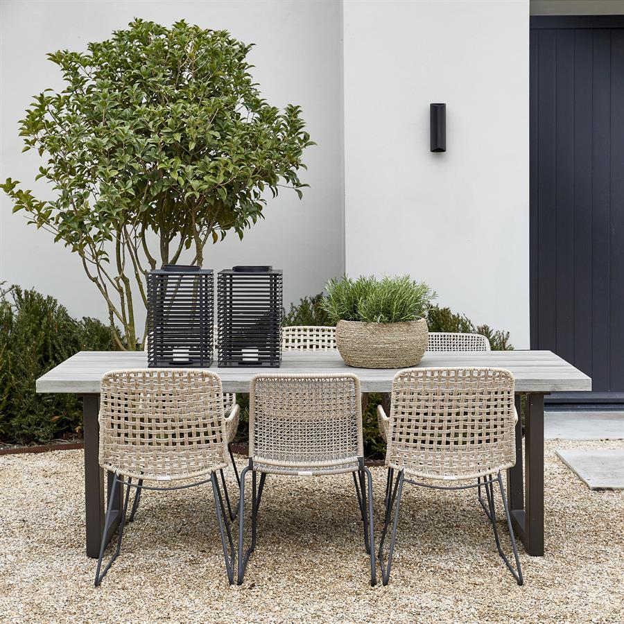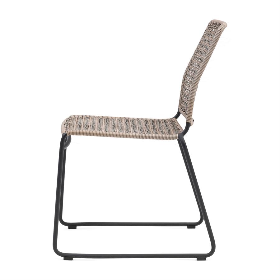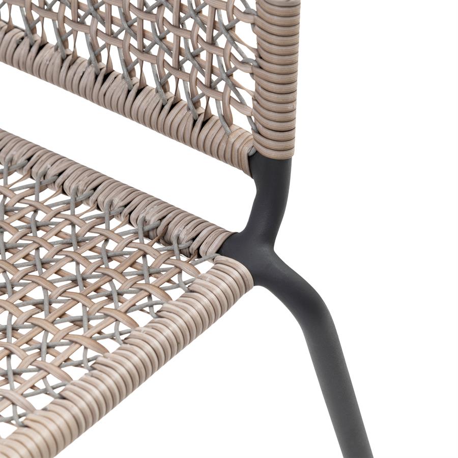 Gi hagebordet ditt et ekstra elegant utseende med RMs Portofino Outdoor Stacking Dining Chair. Den er laget av allværsfletting og metall, og den er spesielt vevd for å danne en sterk, attraktiv korssting.