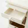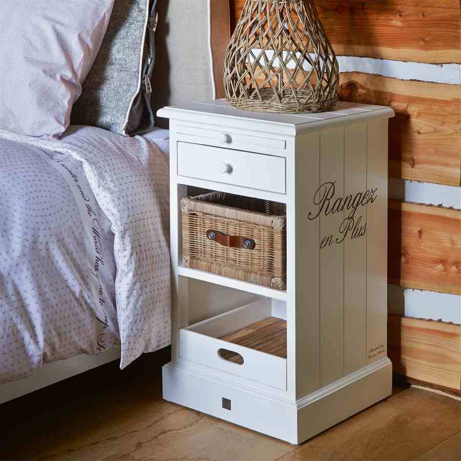 Rangez en Plus-kolleksjonen består av ulike møbler for oppbevaring av dine dyrebare eiendeler. Det karakteristiske ved denne kolleksjonen er kombinasjonen av hardtre og rotting. Dette nattbordet har to treskuffer, fire rottingskuffer og et vakkert serveringsbrett i tre.