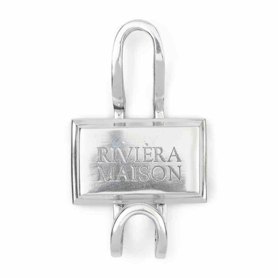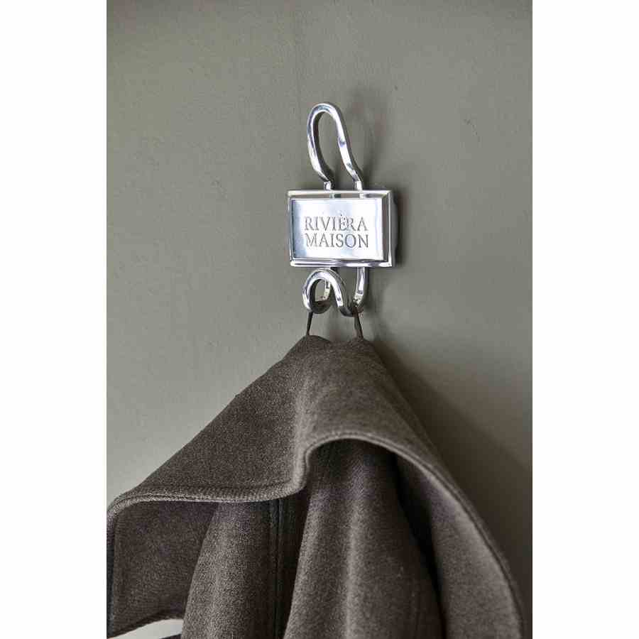 Denne vakre Rivièra Maison Hook er et ekte tillegg til interiøret ditt. Aluminiumsdesignet har en sølvfinish og har den gjenkjennelige merkelogoen på en elegant rektangulær plate. Kroken er perfekt for å henge opp favorittkåpen og gir et stilig og moderne preg til ethvert rom. Legg til denne lekne kroken til hjemmet ditt og nyt Rivière Maison-opplevelsen!