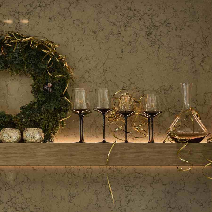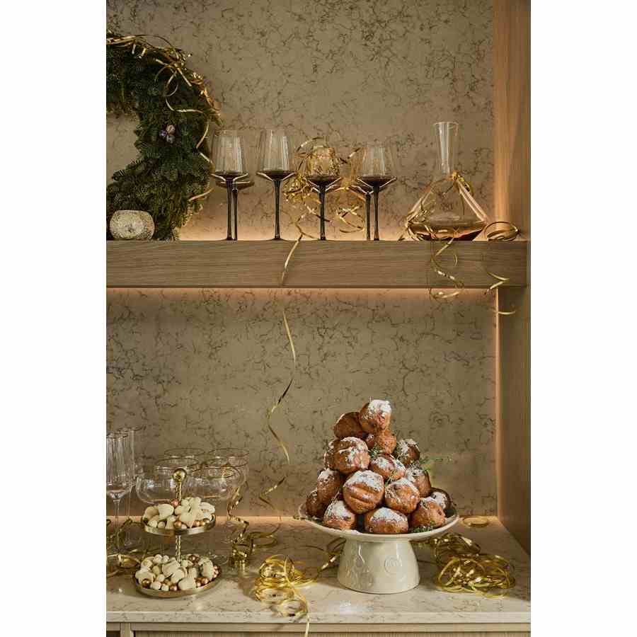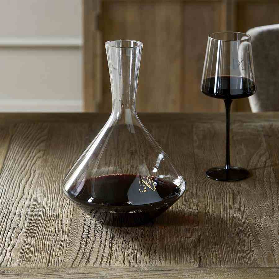 Denne elegante karaffen har en slank, utsvingt form og en gull RM-logo. Ideell for servering av vin eller vann, gir den et luksuriøst preg til enhver borddekking.