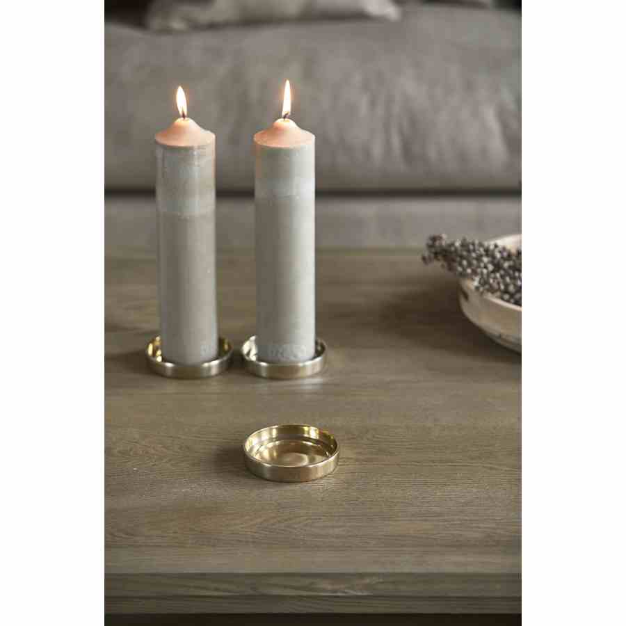 Med RM Candle lysbrett i gull får du et stilig tillegg til bordet ditt. Dette brettet er perfekt for stumpe lys med en høyde på 30 til 40 cm. Skap den ultimate atmosfæren og presenter lysene dine individuelt. Rivièra Maison-logoen er subtilt gravert på siden av dette tunge, gullfargede aluminiumsbrettet. Denne gjenstanden utstråler kvalitet og er også tilgjengelig i sølvfarge. Opplev den tidløse appellen til Rivièra Maison med dette hjemmetilbehøret.