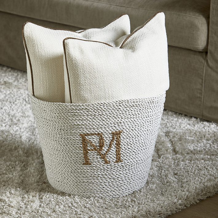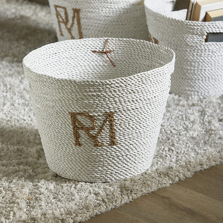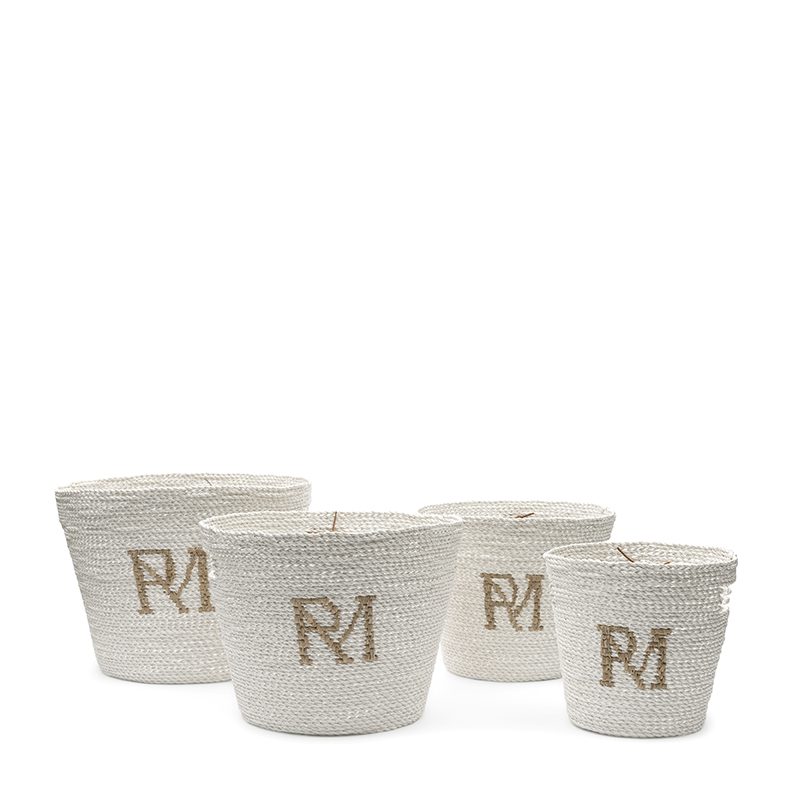 Oppbevar dine kjære eiendeler i RM Monogram Basket Set, som består av størrelsene L, M, S og XS. Disse kurvene er laget av Raffia, et materiale laget av tynne bladstrimler fra raffiapalmen. Finishen skaper et mønster av naturlige brune linjer på en hvit bakgrunn, og danner RM-monogrammet.