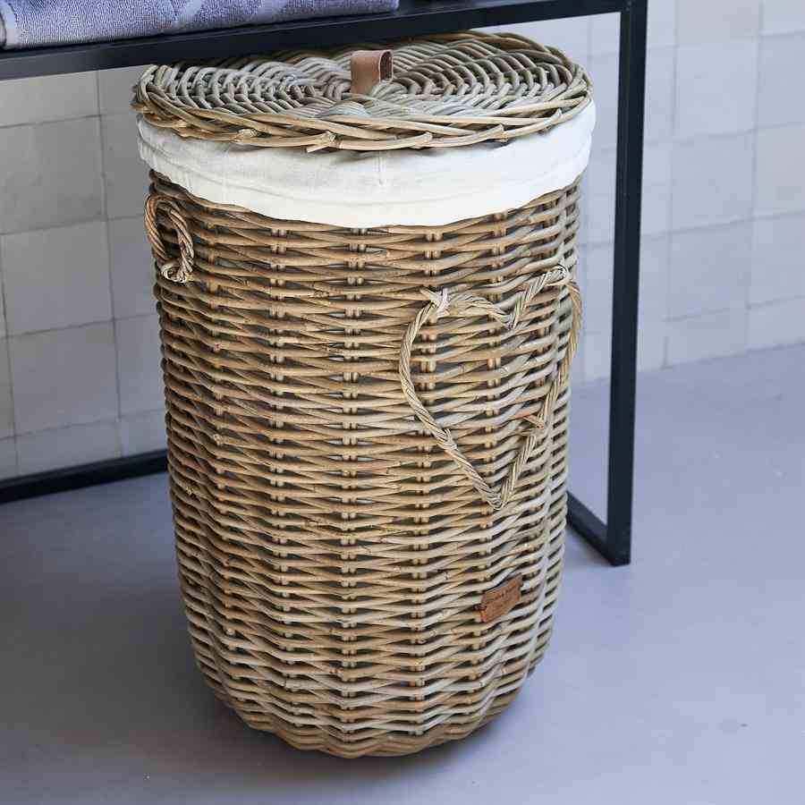 Kommer bunnen av skittentøyskurven også sjelden til syne? Å samle tøy blir mye mindre irriterende når du bruker denne skittentøyskurven. Innerveggen er foret med solid bomull, som forhindrer at tøyet setter seg fast mellom rottingen. Lokket hindrer vond lukt fra å slippe ut av kurven.