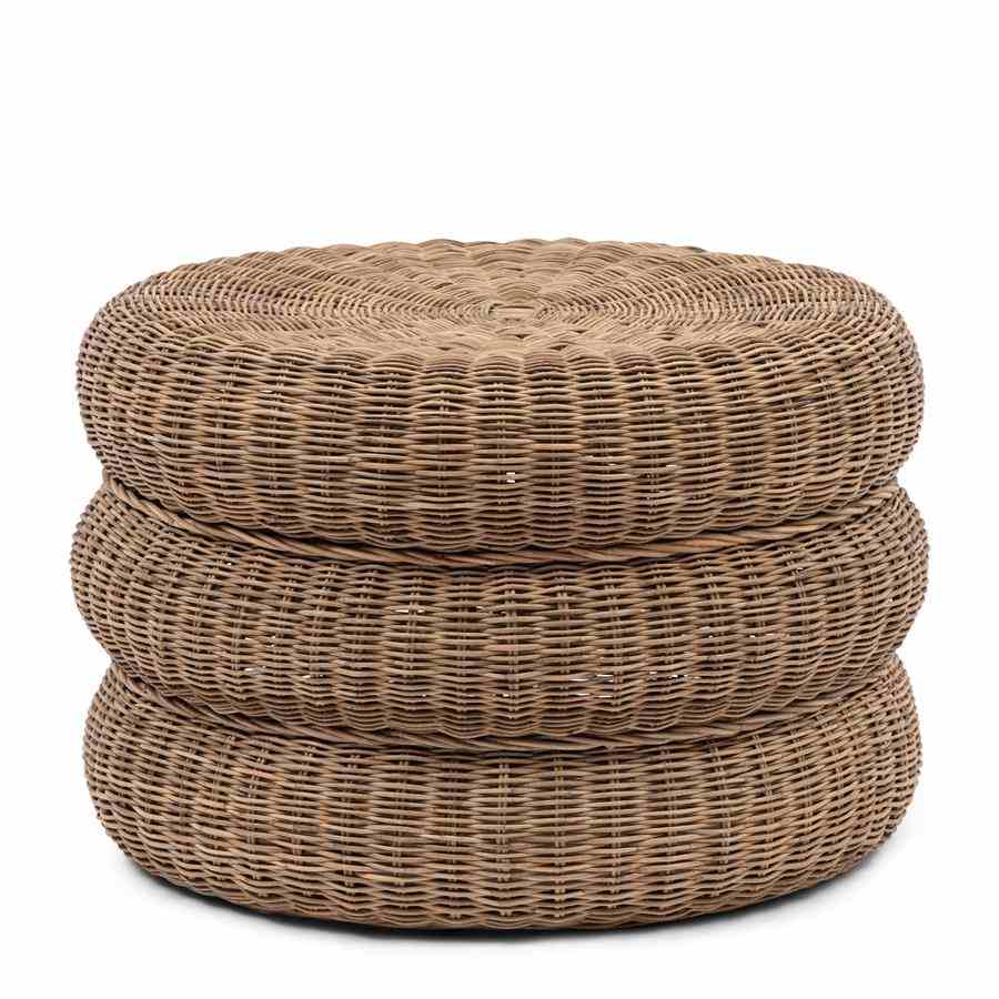 Den bemerkelsesverdige formen til denne morsomme lille puff av rotting slimit gir puff navnet sitt. En macaron er en rund kjeks som består av flere lag. Denne håndflettede puffen ligner disse lagene. Den flettede rottingen er solid nok til å sitte, men du kan også bruke fotskammelen som et hendig sidebord.