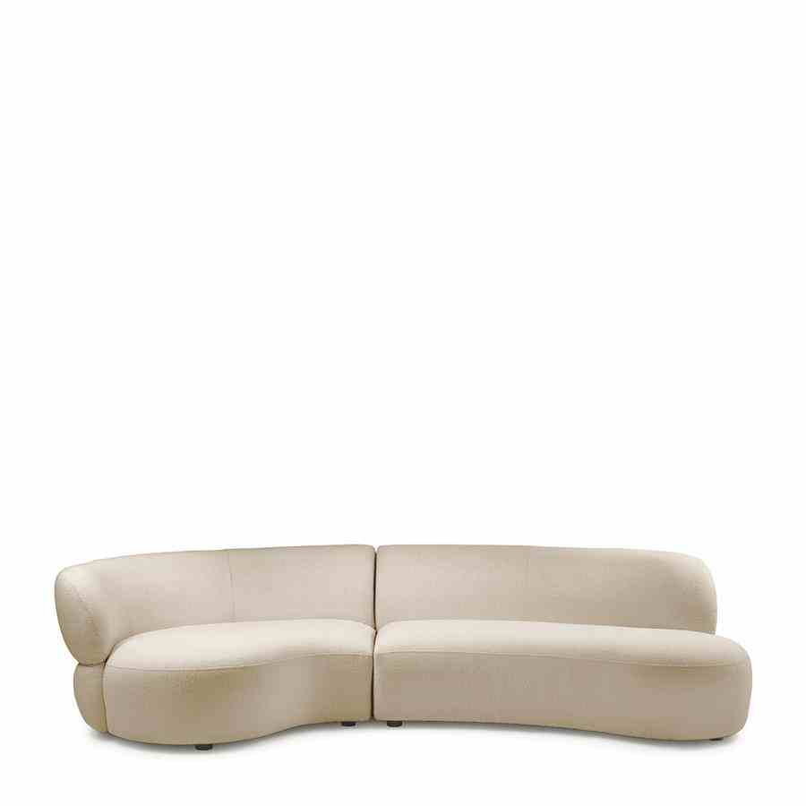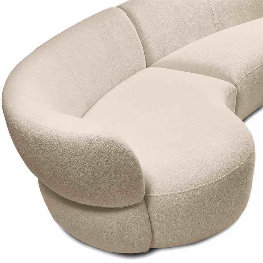Skap ditt ultimate «hjem» med den module San Remo 2,5-seters sofa med armlenet til venstre. Består av en solseng og et hjørne. Designet til denne sofaen ble utviklet og laget i samarbeid med Anna Nooshin. Dette rike Bouclé-stoffet i fargen naturlig grå gir sofaen et moderne utseende og de organiske formene på elementene gjør dette til et unikt design! Lounge og bo komfortabelt og kombinere det med lenestolen og fotskammelen fullfører det elegante utseendet.