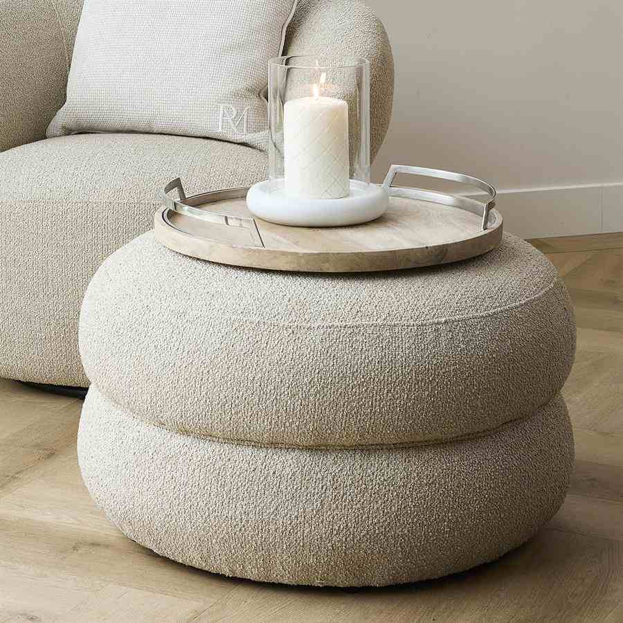 Lag et sete med denne fotskammelen eller et salongbord med et brett på. Designet til denne puffen ble utviklet og laget i samarbeid med Anna Nooshin. Dette rike Bouclé-stoffet i fargen Natural Grey gir dette vakre elementet et moderne utseende og de organiske formene gjør dette til et unikt design! Lounge og bo komfortabelt og kombiner med lenestolen og fullfør det elegante utseendet.