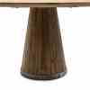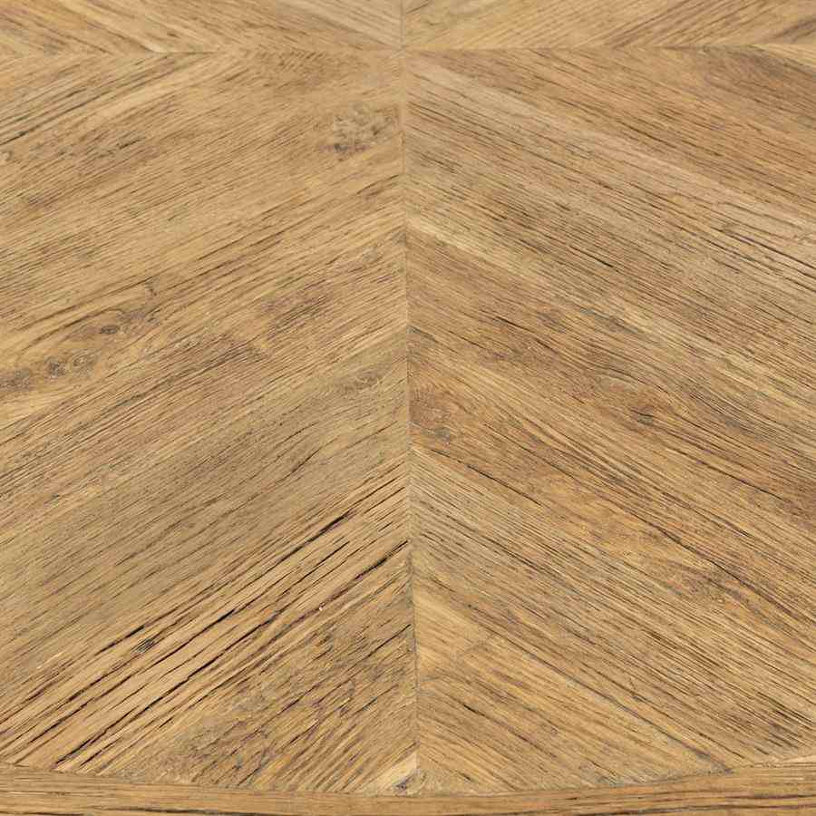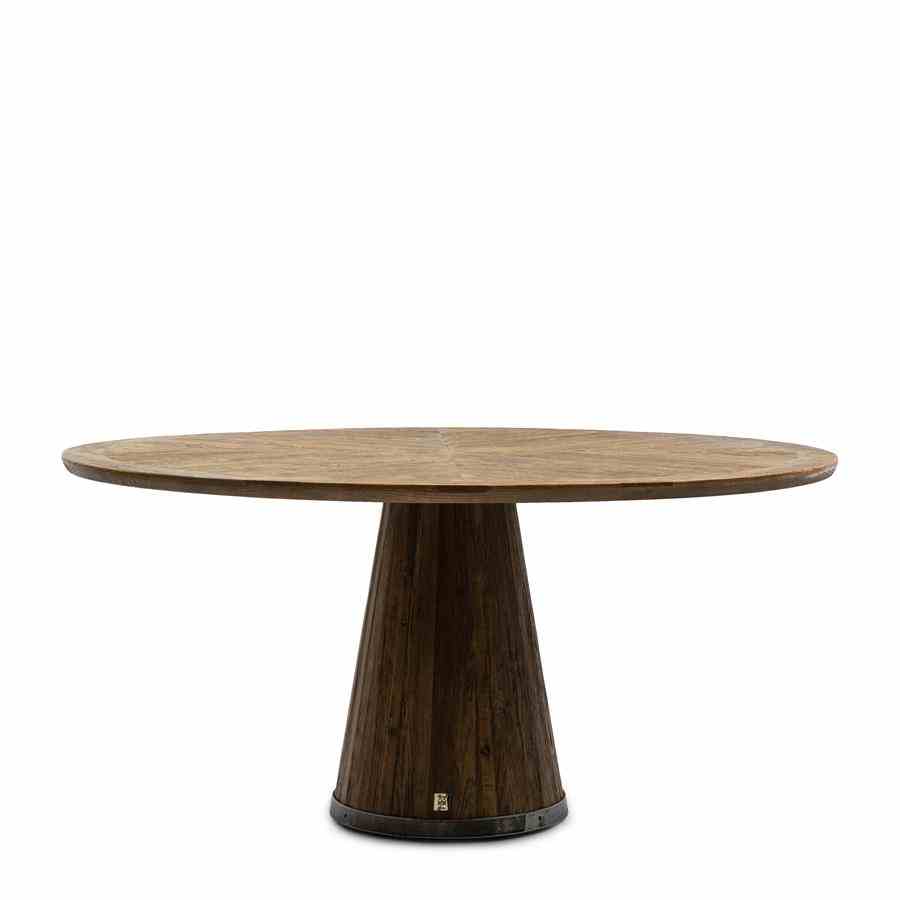 Dette solide, men elegante spisebordet er Siroko Beach, en juvel i Riviera Maisons kolleksjon. Spesielt den runde bordplaten fanger oppmerksomheten på grunn av dens spesielle, kryssede innlegg, som er laget utelukkende av gjenvunnet eik. Benet har kjegleform, veldig vakkert, men også praktisk fordi det tar liten plass.