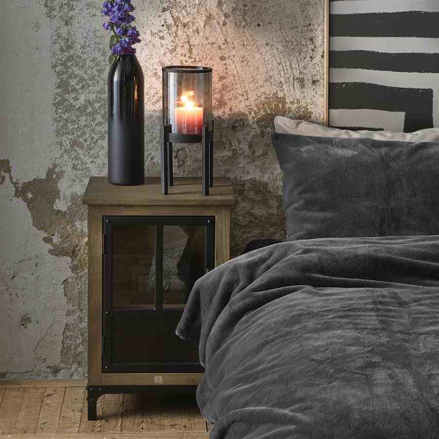 Som de andre varene i Hoxton-serien er dette sengeskapet laget av en kombinasjon av resirkulert asketre, glasspaneler og svertet jern. Det er skap for venstre og høyre side av sengen, med ulikt plassert håndtak i hvert tilfelle.